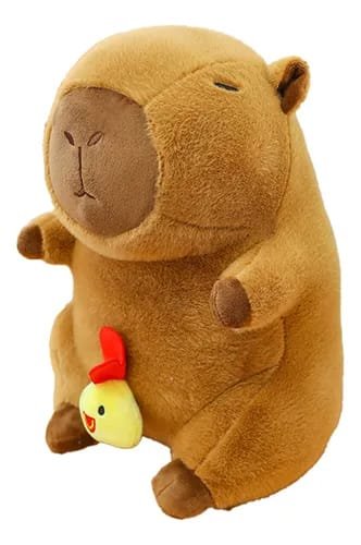 Conheça a sua nova companheira de relaxamento! Esta não é uma capivara comum: ela é super macia, tem 30 cm de fofura e vem com um adorável Pintinho de Pelúcia conectado por um elástico/puxador! Perfeita para decorar e aliviar o estresse com um toque de diversão.