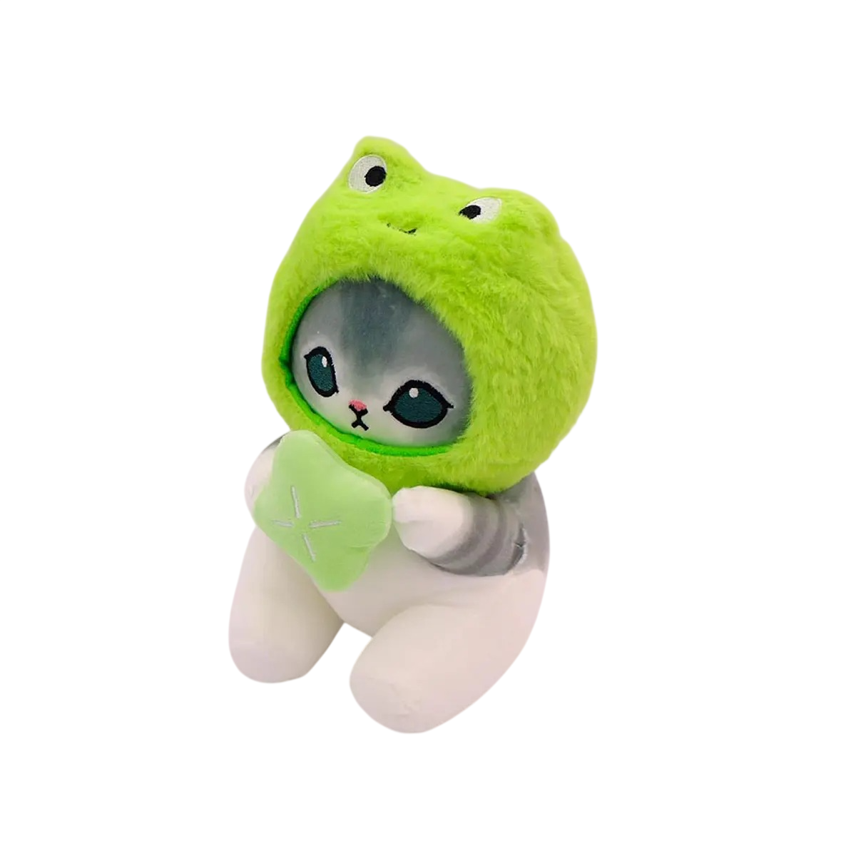 A Pelúcia Gatinho Sapinho Mágico é a combinação perfeita de fofura e criatividade. Com um delicado capuz de sapinho verde, olhos expressivos e patinhas rosadas, esse gatinho conquista à primeira vista. Ele ainda segura um acessório em formato de estrelinha, trazendo um toque especial e encantador ao design.
